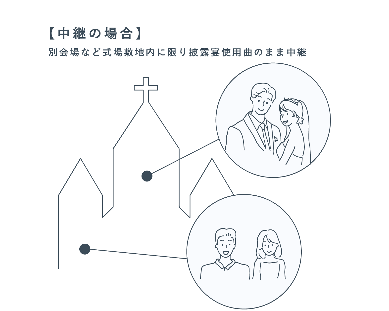 (2)中継の場合- 同式場内の別会場への中継は 披露宴使用曲をそのまま使用することができます