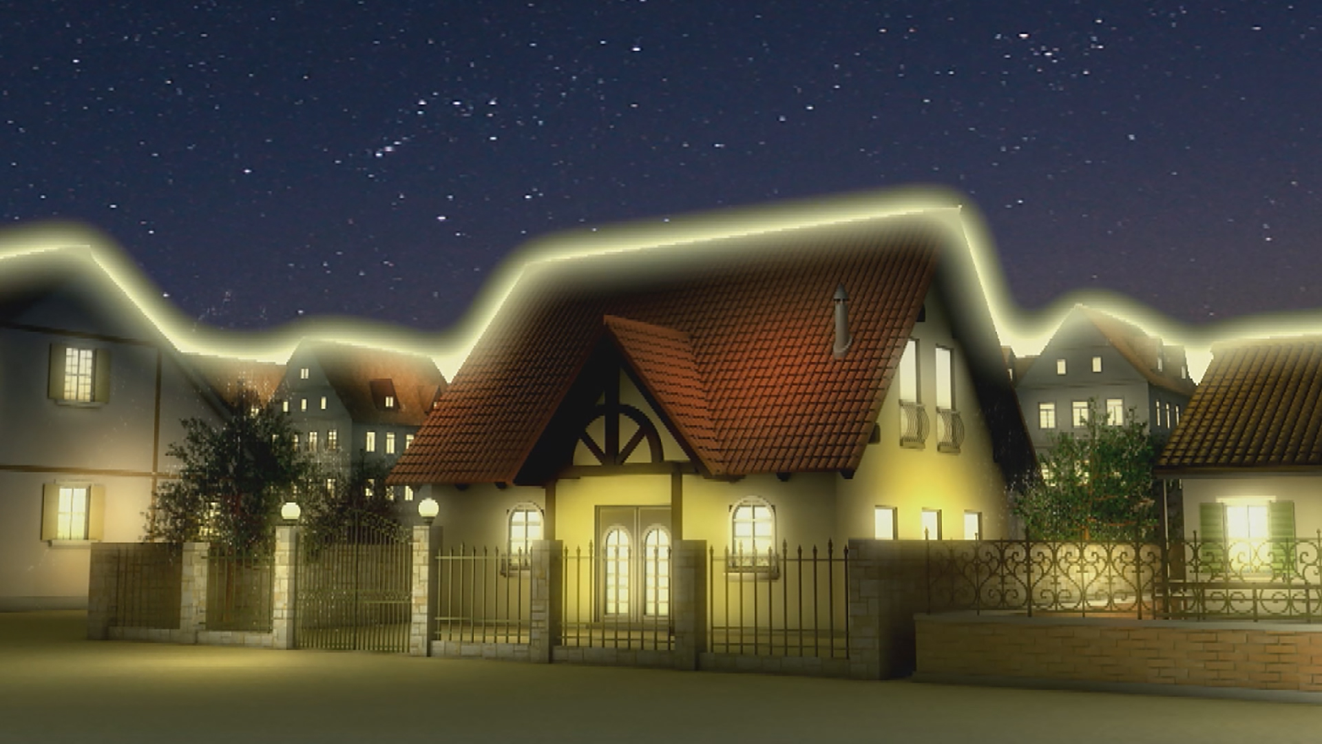 静かな夜の街を星明りが明るく照らすロマンチックな雰囲気から
